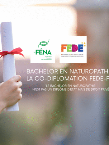 Le Bachelor en Naturopathie* n’est pas un diplôme d’Etat mais de droit privé qui représente l’équivalent de notre licence. Il est délivré conjointement par la FÉNA française et la FEDE suisse, deux acteurs reconnus et réputés dans leur domaine respectif. Ce diplôme est qualifié de niveau 6 selon le Processus de Bologne sur la base d’un Référentiel unique FÉNA-FEDE.