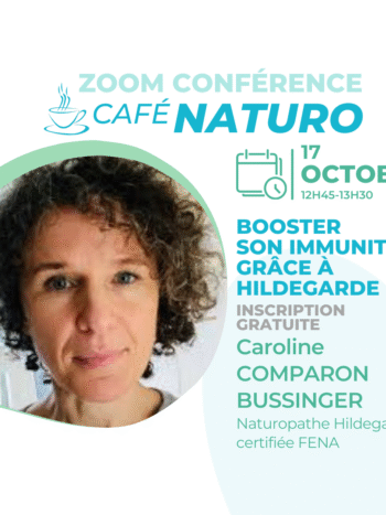 Durant ce café naturo, Caroline vous donnera les clés pour booster votre immunité pour bien aborder la saison de l’Automne et surtout passer un hiver en forme avec une bonne vitalité. Elle vous expliquera de manière simple et pédagogique le fonctionnement de notre immunité : d’où vient-elle ? Est-elle liée à notre hygiène de vie ? Se modifie-t-elle au cours de la vie ? Pourquoi tombe-t-on malade ? Elle vous donnera les clés d’une immunité au top, selon l’approche d’Hildegarde de Bingen.